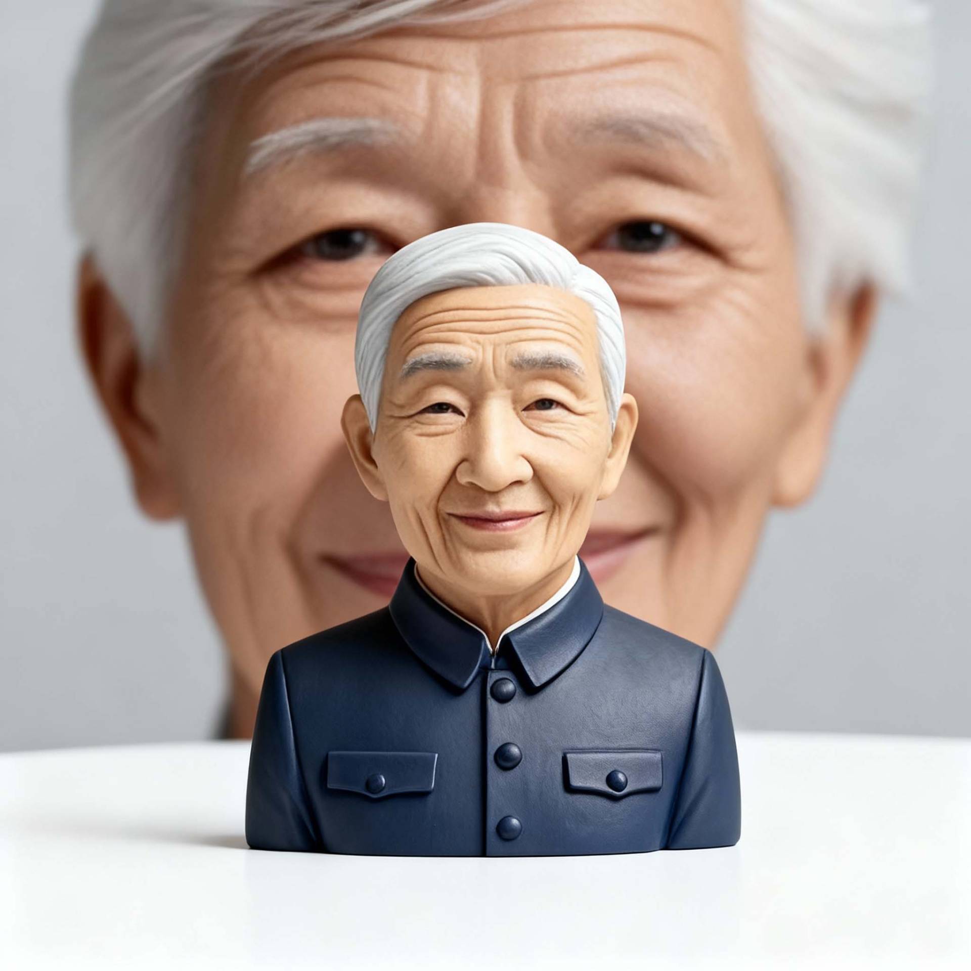 3D Printed Bust of Cai Lan with White Hair and Black Clothes