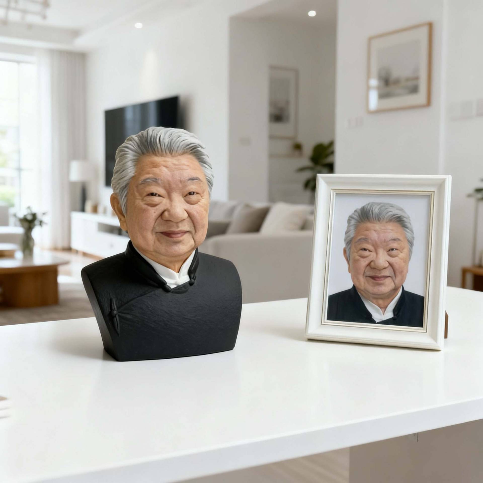 3D Printed Bust of Cai Lan with White Hair and Black Clothes